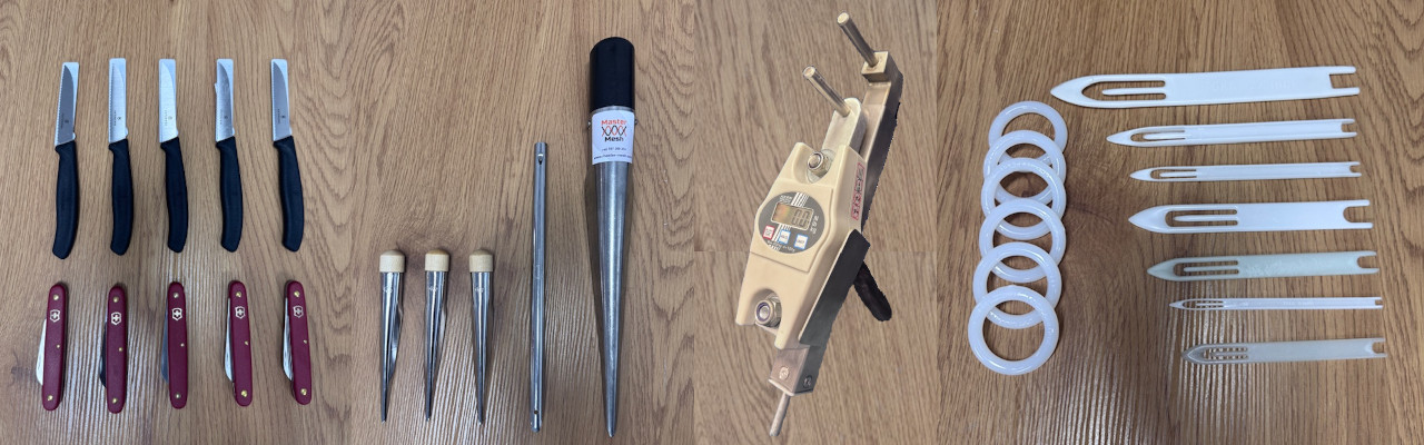 A durable stainless steel spike for braiding ropes, with a wooden or plastic handle.
