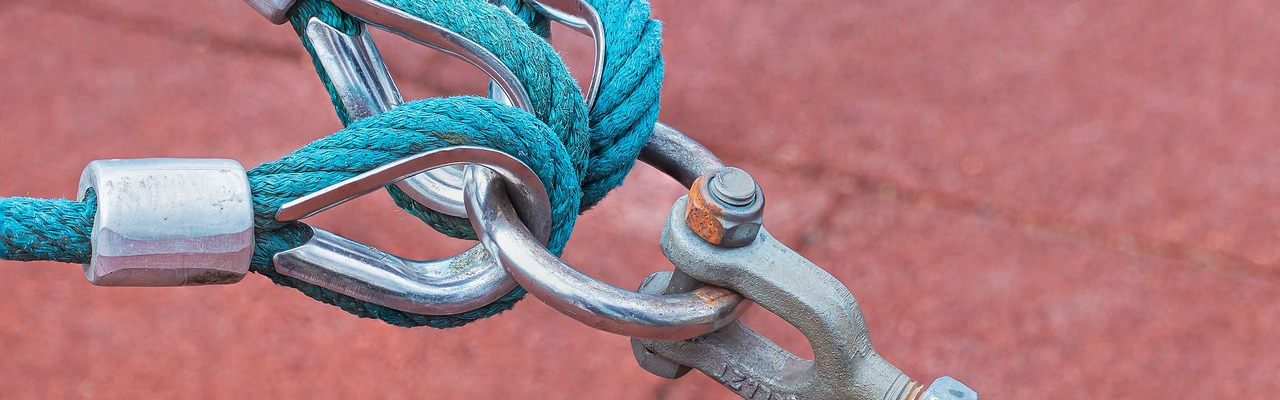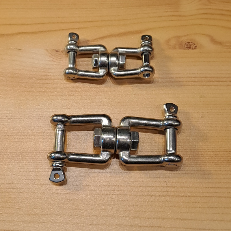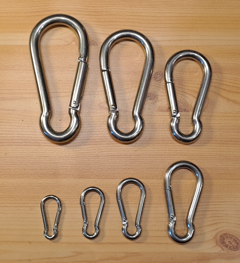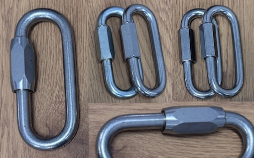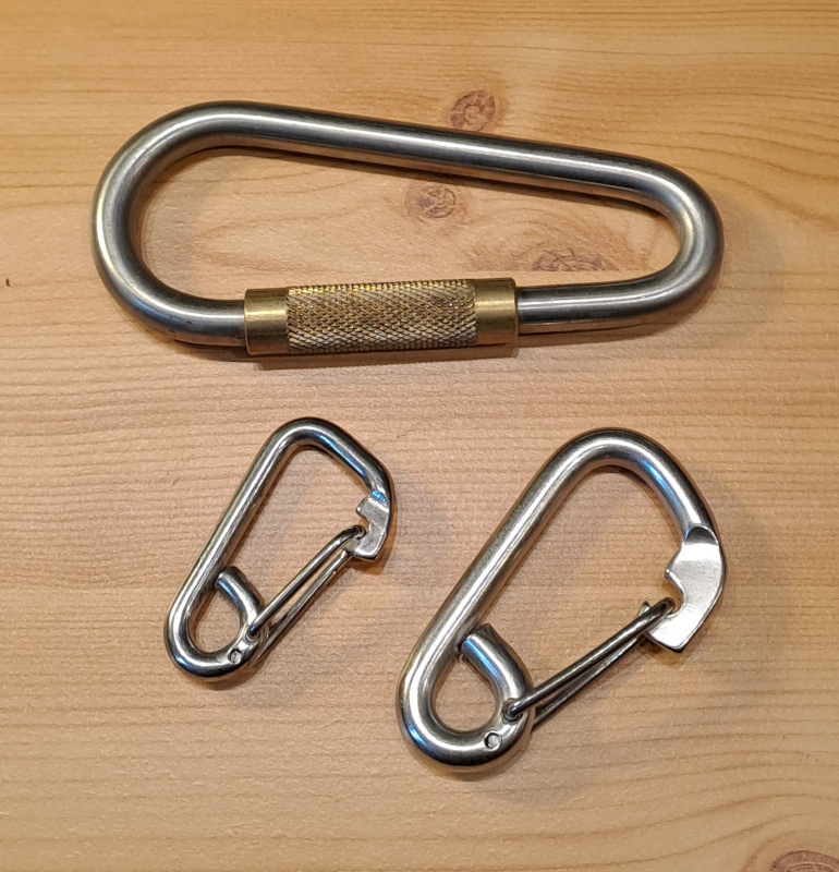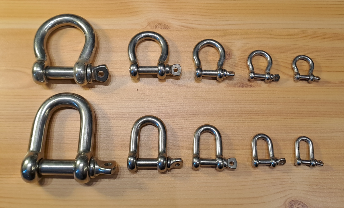 A metal U- or Ω-shaped clamp secured with a screw or latch. Used for quickly and securely connecting ropes, chains, pulleys, and nets. Available in many sizes.